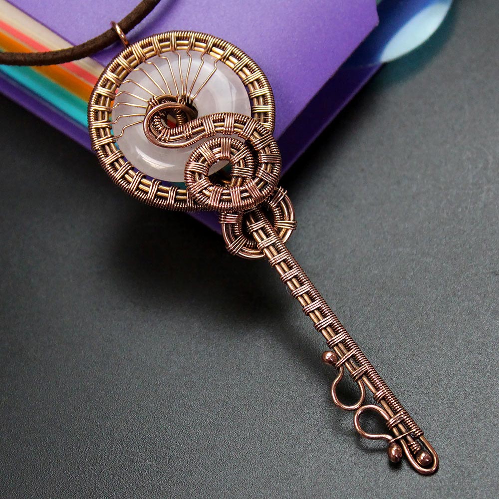 Кулон "Ключик" ручной работы из медной проволоки розового кварца. Автор: Валерий Воробьев. Есть мастер класс.