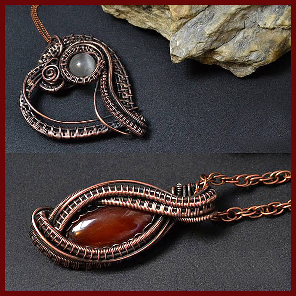 Медь — один из самых любимых материалов у начинающих и опытных wire-wrap мастеров. Её тёплый красноватый оттенок придаёт изделиям уют и винтажность.