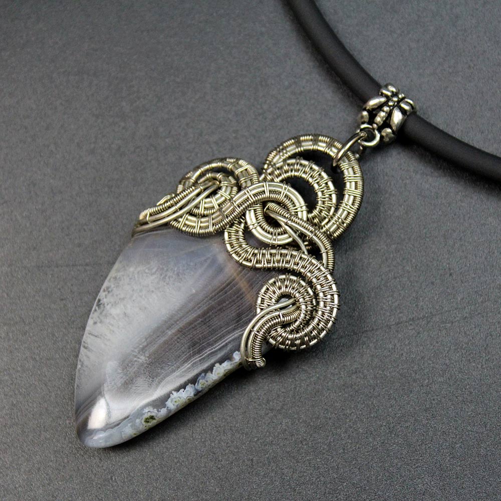 Кулон ручной работы из проволоки нейзильбер и агата. Автор: Валерий Воробьев.