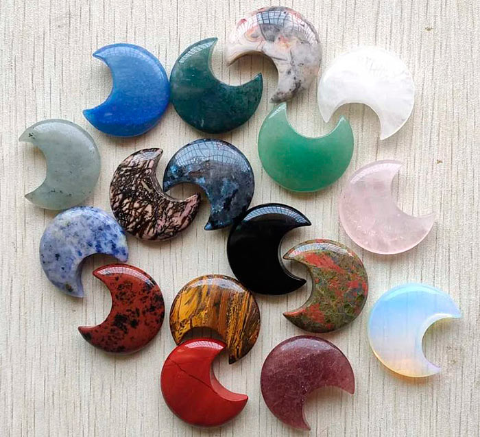 Для курса подойдут любые натуральные камни в форме полумесяца: лунный камень, агат, кварц, мрамор, сердолик и другие. Каждый камень несёт своё значение, но форма полумесяца уже сама по себе усиливает лунную энергетику.